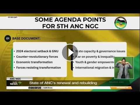 This week, the ANC National General Council will receive and deliberate on the party's Political Report, Midterm Report, Reports from Subcommittees, and the Financial Report, each forming part of the collective reflection on the state, progress, and renewal of the ANC. To talk more about the issues on the Agenda and the history of the ANC NGC, we are now joined by SABC News Political Editor, Mzwandile Mbeje and SABC News Specialist Contributor, Sophie Mokoena.