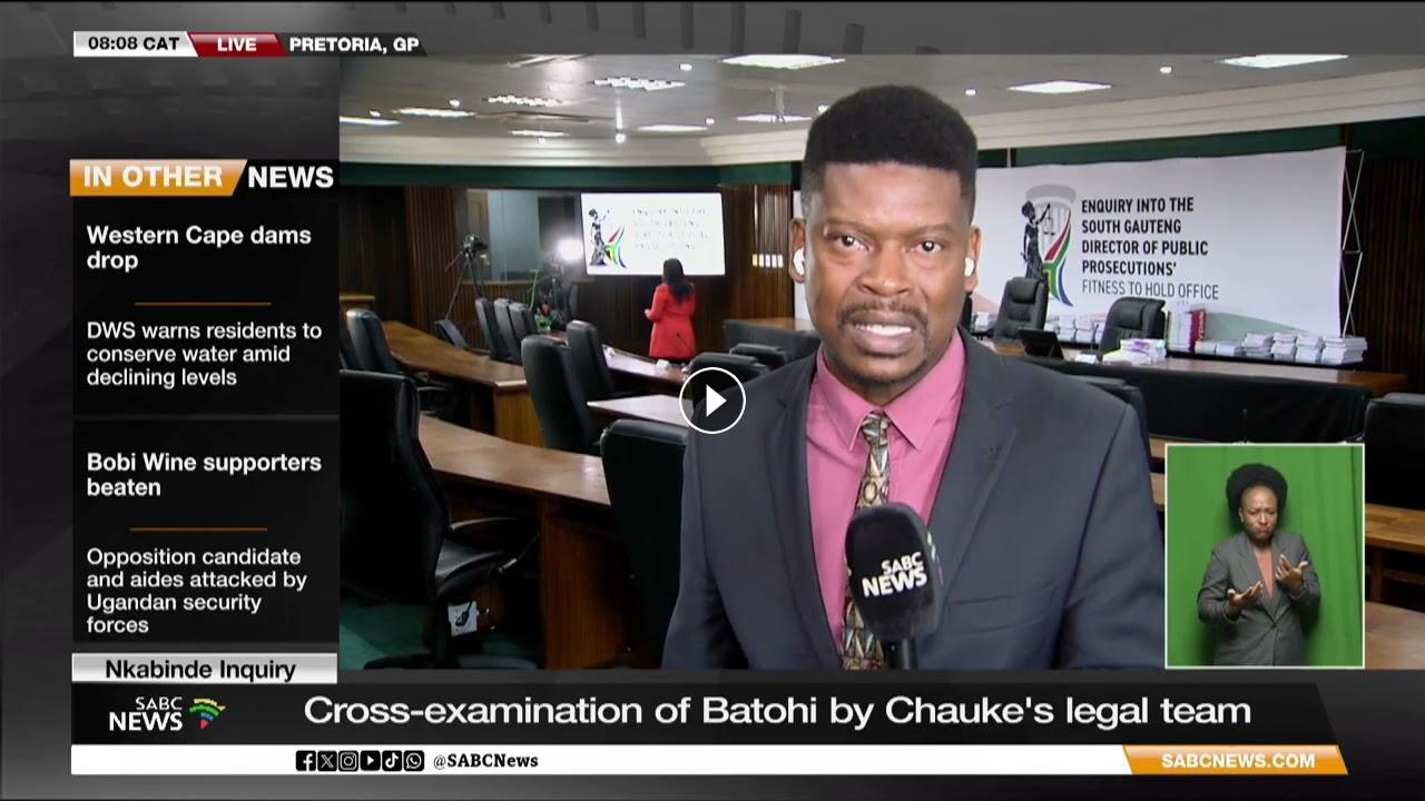 NPA head Shamila Batohi will be cross-examined by the legal representative of suspended South Gauteng Director of Public Prosecutions Advocate Andrew Chauke when the Nkabinde Enquiry resumes this morning. We're joined by SABC News Reporter Ofentse Setimo.