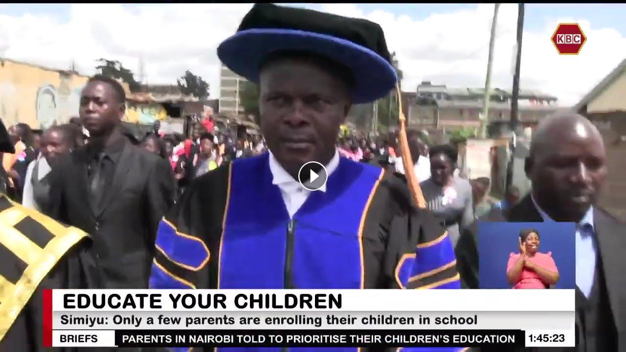 Nairobi County Commissioner David Simiyu has urged parents living in informal settlements to take full responsibility for their children's education by enrolling them in school. Speaking during a mega graduation and awards ceremony at Excellence School in Dagoretti North, Simiyu expressed concern that out of 169 informal settlements in Nairobi, only a small number of parents have taken the initiative to ensure their children access education.
