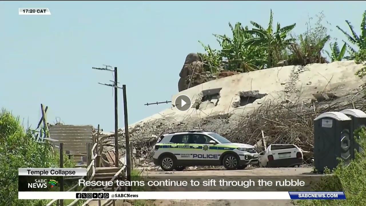 Rescue teams are continuing their search for potential survivors amid the rubble of the Redcliffe temple, which tragically collapsed on Friday in Verulam, KwaZulu-Natal.